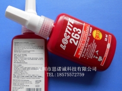 LOCTITE263_乐泰263螺纹锁固剂_【高强度/螺丝胶】</p><p>LOCTITE汉高乐泰263胶水、乐泰263螺纹锁固剂、高强度螺纹锁固剂、乐泰?263高强度配方集各种优点于一身,产品在惰性金属表面能可靠固化,具有高耐油性和优秀的高温性能。产品替代乐泰?270和乐泰?271配方。</p><p>典型用途:高强度、耐油性</p><p>颜色:红色</p><p>粘度(mPa.s):400/600</p><p>平均拆卸力矩(N.m):23</p><p>平均破坏力矩(N.m):33</p><p>温度范围(℃):-54~150</p><p>固化速度钢@25℃:初固/5分钟 全固/24小时</p><p>推荐促进剂:7649/7471</p><p>相对密度:1.1</p><p>包装规格:50ml瓶装、250ml瓶装</p><p></p><p>联系人:晏经理 </p><p></p><p>联系电话 18575572759 </p><p></p><p>网址:loc18575572759.1688.com </p><p></p><p>深圳市思诺诚科技有限公司是一家供应厂家直销汉高乐泰LOCTITE胶水系列产品:密封胶、耐高温抗咬合剂、螺纹胶、厌氧胶、硅橡胶、圆柱轴承固持胶、瞬干胶、环氧树脂AB胶、紫外线固化UV胶、瞬干胶、清洗剂、等进口知名品牌胶水、胶粘剂、粘合剂。产品直销全国各地,深受广大客户青睐。LOCTITE乐泰胶水被广泛应用于:金属、五金、塑料、木材、玻璃、电子、陶瓷、塑胶、机械、电器、汽车、家具、玩具、珠宝、工艺礼品、航天航空、装配、维修、消费品以及包装等广泛行业。 经销批发的乐泰胶水畅销消费者市场,在消费者当中享有较高的地位,公司与多家零售商和代理商建立了长期稳定的合作关系。深圳市思诺诚科技有限公司经销的乐泰胶水品种齐全、价格合理。深圳市思诺诚科技有限公司实力雄厚,重信用、守合同、保证产品质量,以多品种经营特色和薄利多销的原则,赢得了广大客户的信任。